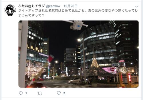 平成最後のクリスマス。 いくらか、名古屋でも盛りがっているだろうと期待して インスタの素材を集めに行ってみた。 名古屋駅前には、”飛翔”というオブジェがある。 飛翔 (モニュメント) - Wikipedia いろいろあったけど、撤去が決まっている ちょっとかなし…